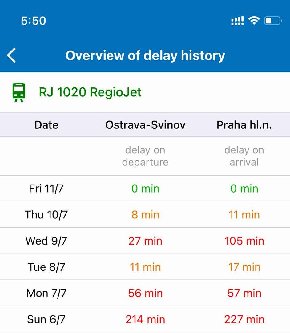 Brzy ráno si jen tak pro srandu kontroluji, jaké měl zpoždění ten páteční brzký ranní vlak, kterým jsem měl původně jet. Málem jsem se smíchy neudržel, protože to byl Murphyho zákon naruby. Níže důkaz místo slibů. 😉