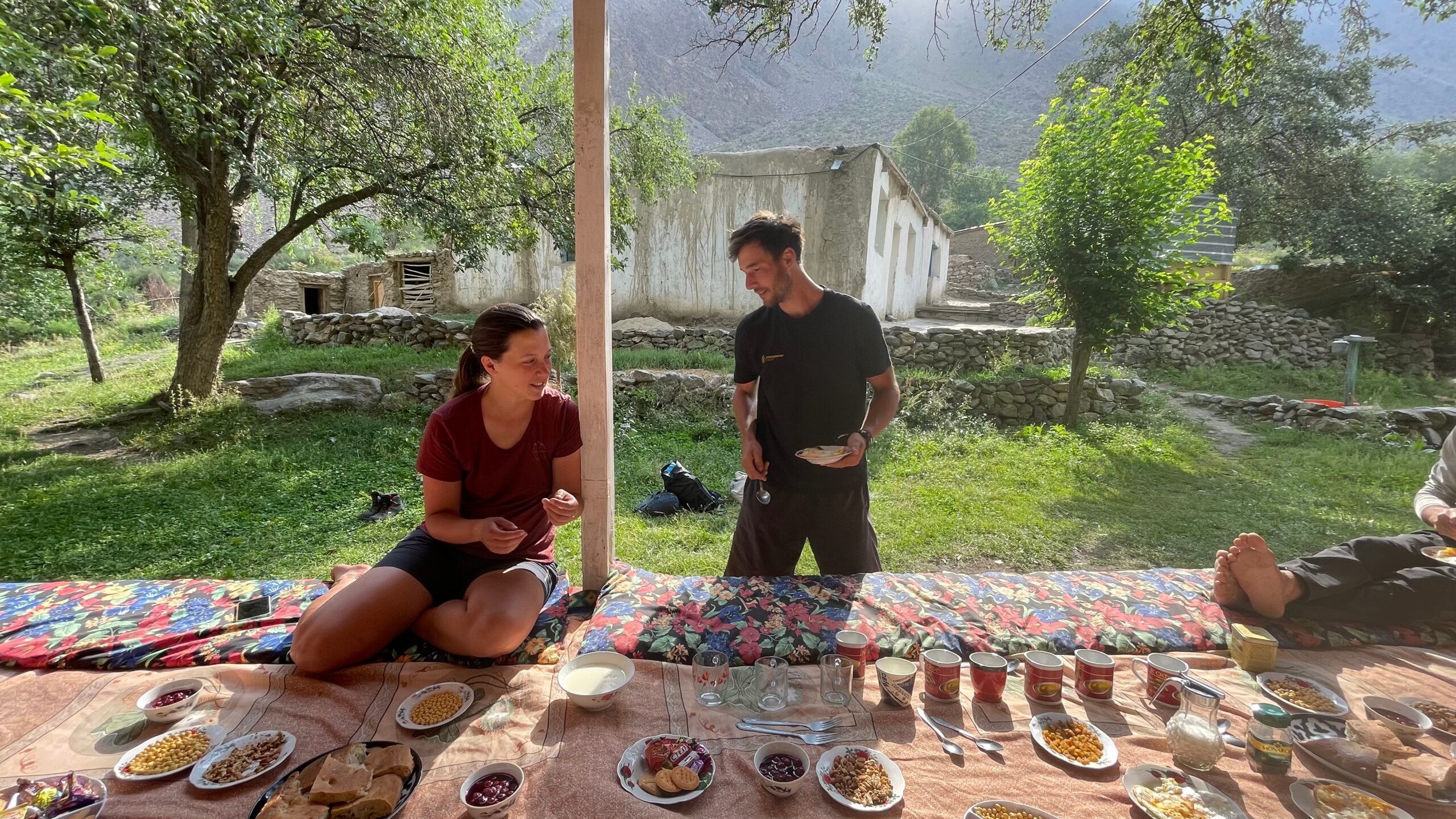 Venku v pergole se spalo naprosto luxusně. Vstáváme na pohodu v půl osmé, protože snídani jsme si zamluvili na osm. Uklidíme peřiny zpátky do domku, kde přespal zbytek party. Jirka svou roli „obsluhovače“ bere velmi zodpovědně. Hned ráno Zuzku krásně probudí a popřeje krásné dobré ráno. Dokonce má zjištěnou její oblíbenou písničku, která bude brzy hrát. Na snídani jsme si objednali buď vajíčka nebo kaši. Měl jsem kaši a spolu se zavařenými třešněmi byla naprosto luxusní – krásně krémová, jen co je pravda. Během snídaně sledujeme, jak Jirka obletuje Zuzku, krmí ji vaječinou, a kdyby bylo třeba, tak jí to i předžvýká. 😀 Chvilku ho hecujeme, že by měl jít podojit krávu, aby měla Zuzka čerstvé mléko. To nakonec Jirka taky zařídí, i když bez toho dojení. 😉 Samozřejmě má po ruce utěrku, kdyby bylo potřeba utřít drobky z tváře Zuzky. Jirka se své role „sluhy“ zhostil opravdu na výbornou. 😉