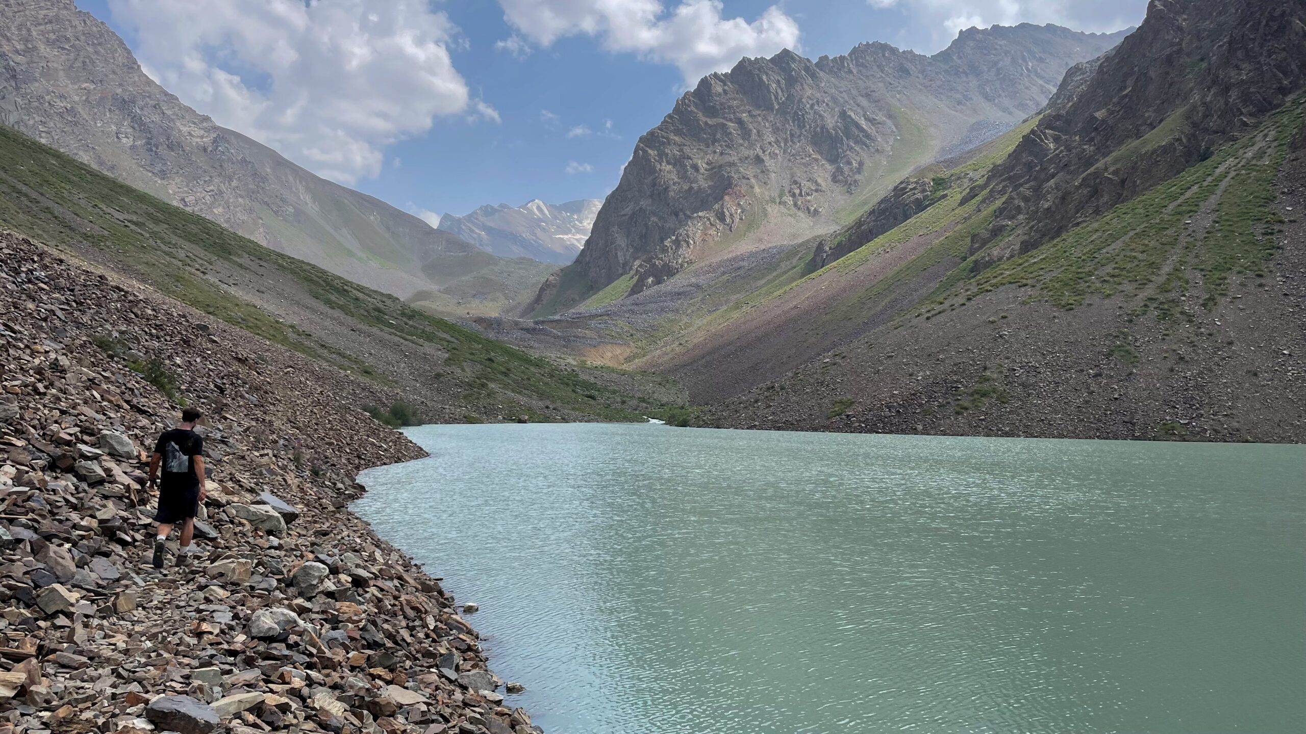 Tým hrotičů má nakonec 4 členy – Jirka, Kuba, Zuzka a já. Sbalíme si vodu, nějaké sušenky a vyrážíme směr hore. Čeká nás i solidní převýšení – bude to nějakých 800-850 výškových metrů, takže to nebude kopec zadarmo. A do toho samozřejmě Slunce jasně vládne obloze = bude horko, velmi horko, dámy a pánové. Plán je celkem jednoduchý – cca 4 hodiny nahoru, hodina pauza, a pak nějaké 3 hodiny dolů. Výkop akce je před desátou a hned ze startu do toho vlítneme, takže u prvního jezera jsme za 45 minut. To by šlo. I zde má jezero barvu aviváže, takže jsme zvědavi, jak to bude vypadat nahoře.