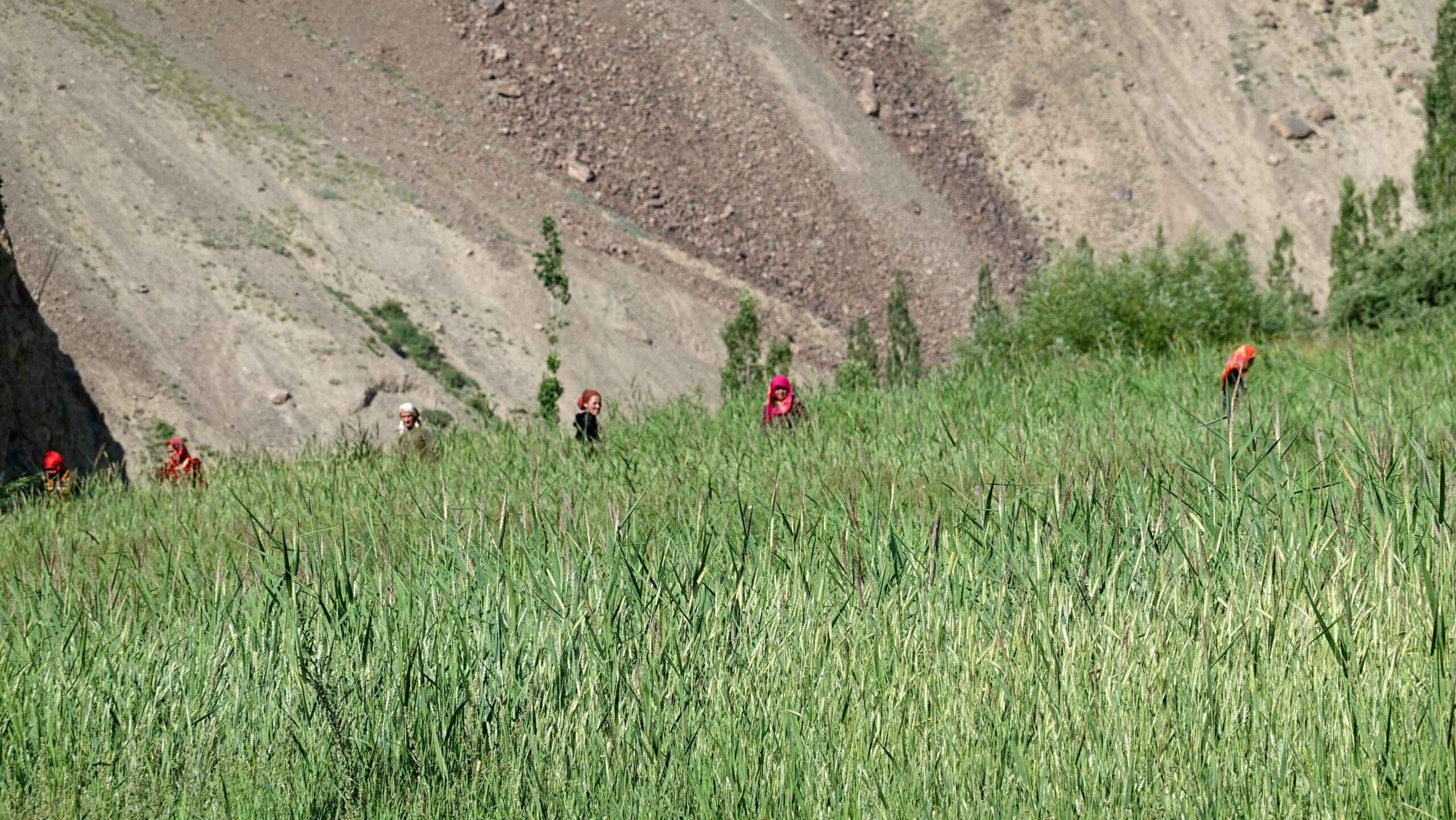 A pak už začnou vyskakovat první příbytky z kamenů a hlíny. Co mě pobaví je, že barák je sice z kamene a hlíny, ale na střeše je satelit a mají podle všeho 5-ti komorová plastová okna. 😀 Naším hlavním úkolem v Bardaře je sehnat odvoz do města Rushan. Jakmile tedy potkáváme první obyvatele vesničky, tak se Blanka coby naše překladatelka ptá na odvoz. Borec řekne, že má auto a cena bude 1 000 SOMů. Blanka řekne, že dáme 700 SOMů. Borec ne, že to je málo. Blanka řekne ok a jde dál. Tady jsem si to ještě neuvědomil, ale již zde jsem měl možnost sledovat mistryni ve smlouvání. 😉 Pokračujeme dále, za chvilku se k nám přidá jeden mlaďoch a říkáme mu, že hledáme magazin (obchod) a auto. Borec kývne a ukazuje nám směr k obchodu a úkoluje nějakého špunta. Pak pochopíme, že špunt běžel pro majitelku obchodu. Mezitím potkáváme další místní a bavíme se o autě, které tam mimochodem stojí. Borec opět nahodí cenu 1 000 SOMů a Blanka opět nahodí 700 a dává jasně najevo, že se s cenou nepohne. Postarší pán někomu volá, a pak si plácneme na cenu 700 SOMů, dámy a pánové. Jedno je nyní jasné – kdykoliv budu chtít smlouvat, tak to přenechám mistryni Blance. Naprostý profík, kdy protější strana prohraje ještě dříve než začne. 😀 😀 😀