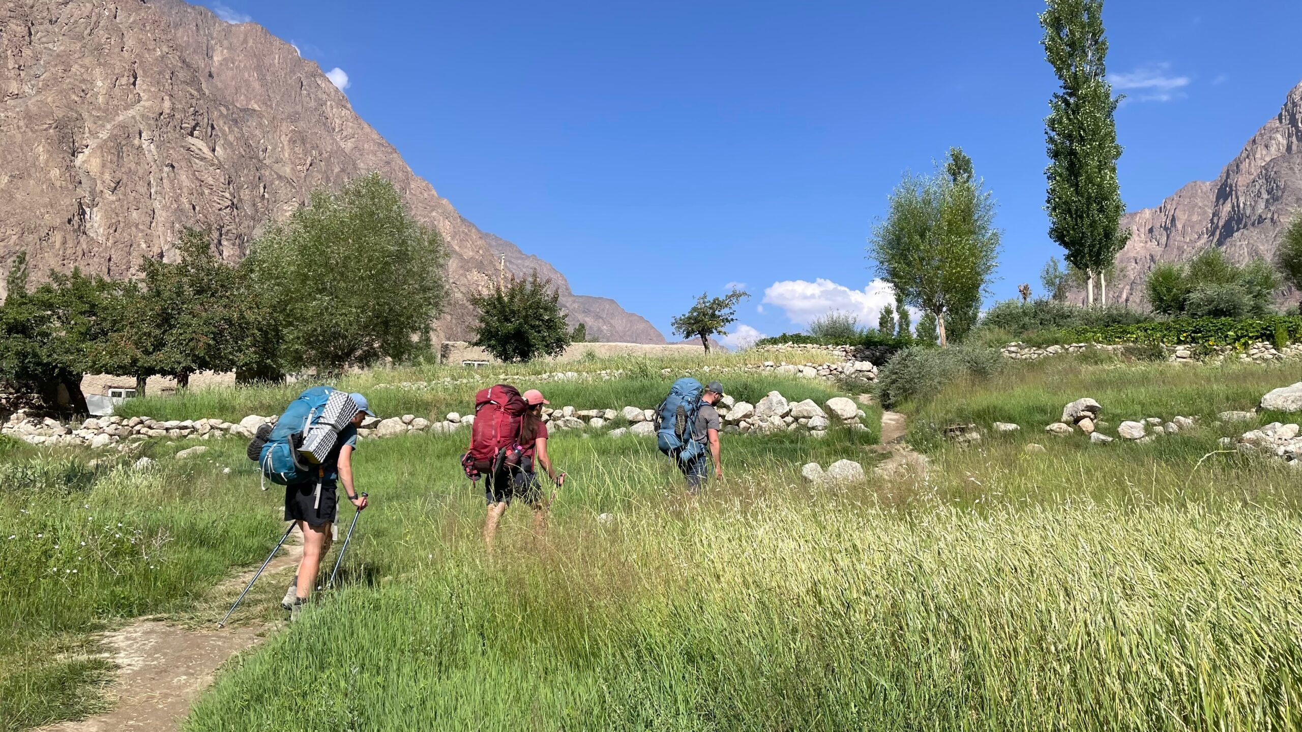 Valím to teda sám a je to celkem zajímavý pocit, protože poprvé nemám nikoho na dohled. Při sestupu narazím na stádo koz, které tentokrát na pastvu ženou dvě dámy. Za cca půl hodiny dojdu Blanku s Kristy, které čekají u mini osady. Tam se se mnou dá do řeči místní děda, který umí slušně anglicky. Za chvilku dorazí Zuzka s Kubou a bavíme se o těch komárech, kteří byli opravdu masakr. Holky mají solidně nateklé ruce či nohy. Do vesničky Bardara to celkově mělo být nějakých 6-7 km, takže se ani neotočíme a najednou vletíme do zeleně, kam se podíváš.