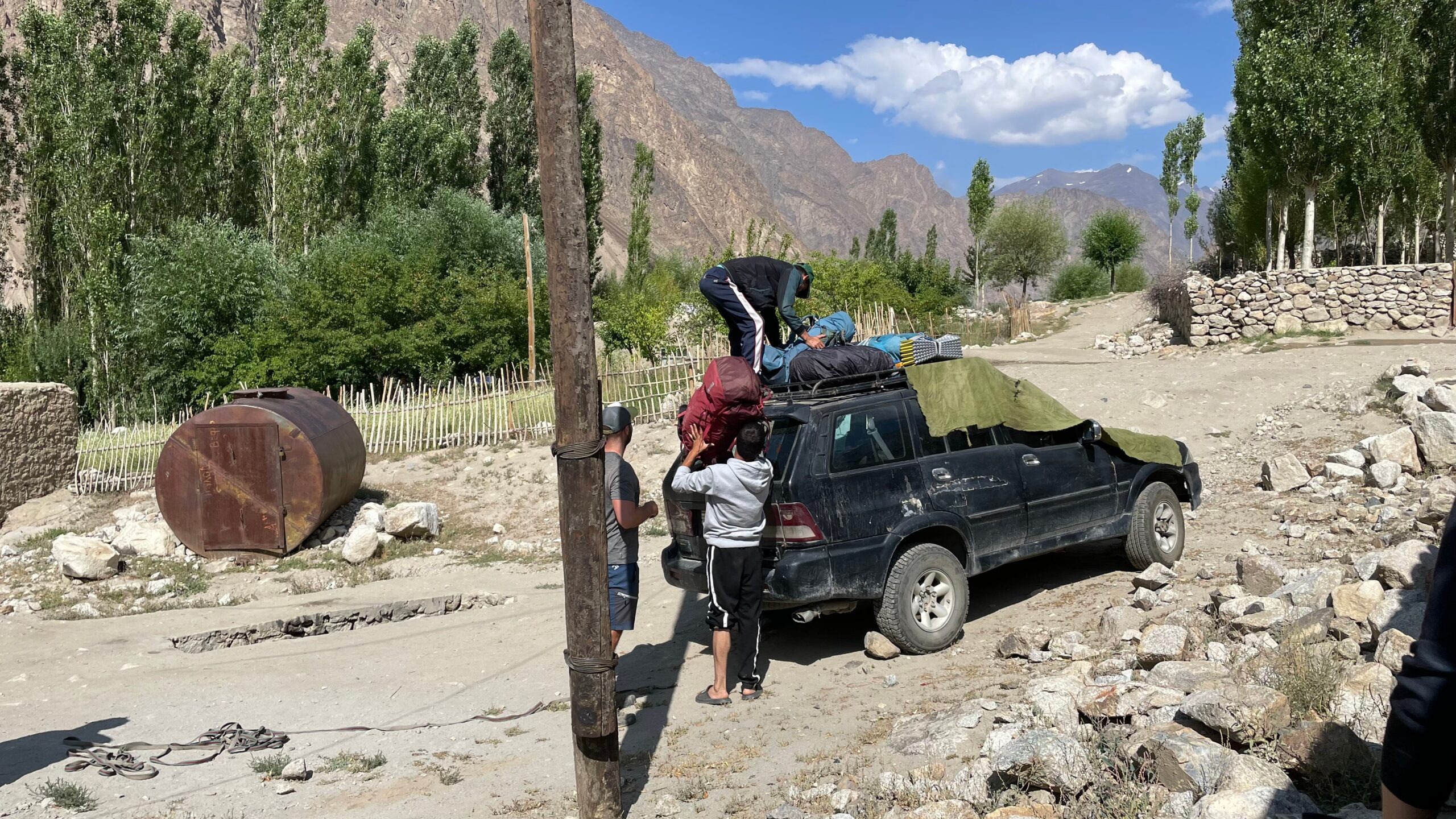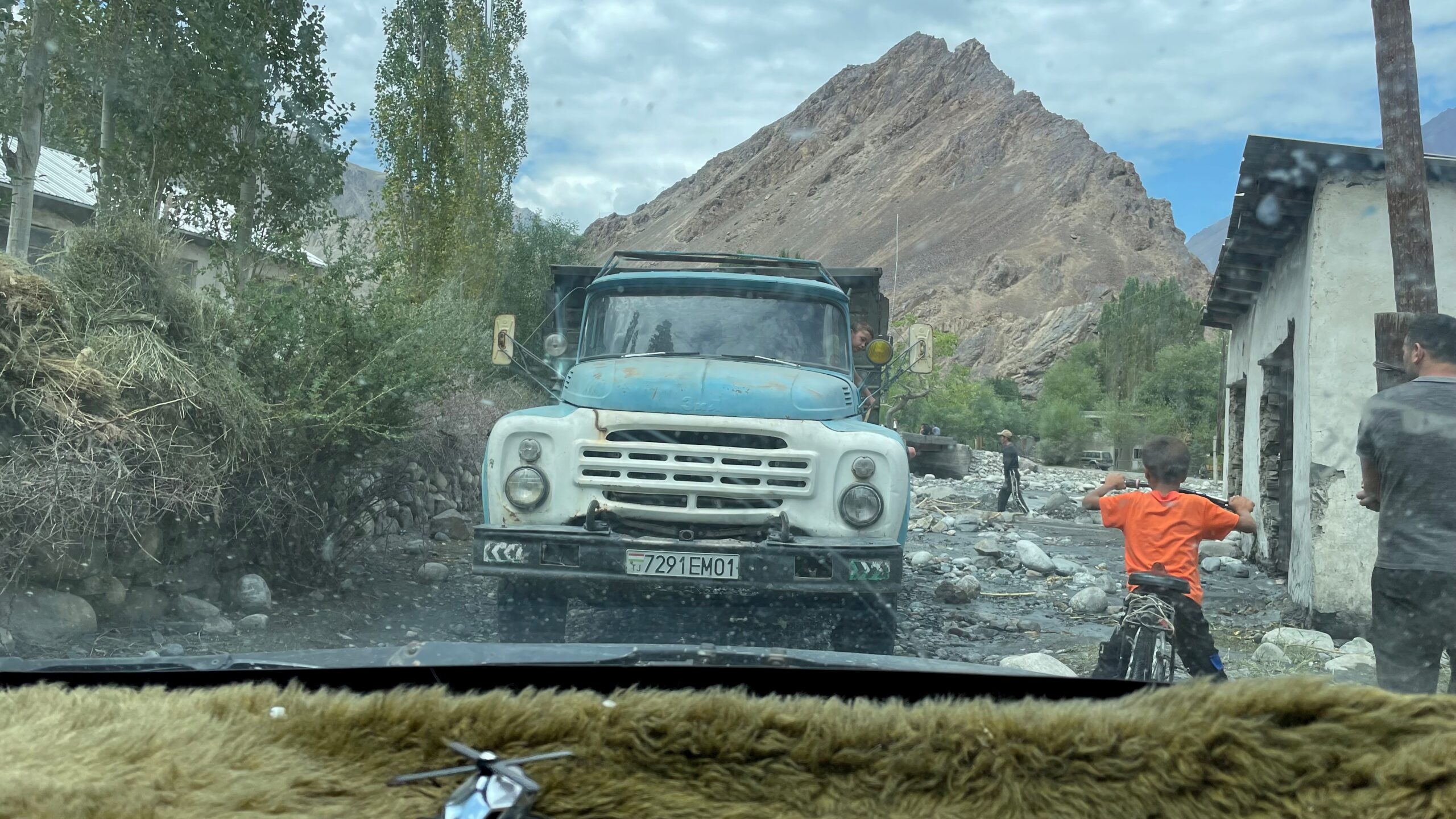 Netuším, jak dlouho pánové oživovali auto (odhad je cca hodina), ale nakonec se zadařilo a my vyrážíme směr Rushan. Začátek cesty je absolutní masakr – přece jenom Bardara je horská vesnička a bylo třeba sjet na „hlavní“ tepnu. Sedím vpředu a mám o zábavu postaráno. Najednou borec zastaví a gestikuluje, že něco není v pořádku. Vystoupí, otevře kapotu a hrabe se v té baterce. Pak se vrátí, ukazuje mi na dva otevřené kabely, které trčí mezi předními sedadly a ukazuje, abych je o sebe „škrtal“. Vrátí se pod kapotu, něco tam dělá a já sem tam škrtnu kabel o kabel. A najednou to zajiskří, je tam kontakt. Borec se vrátí a je nadšený. Vůbec netuším, co se děje, ale hlavní je, že pokračujeme. Asie jak vyšitá. 😀