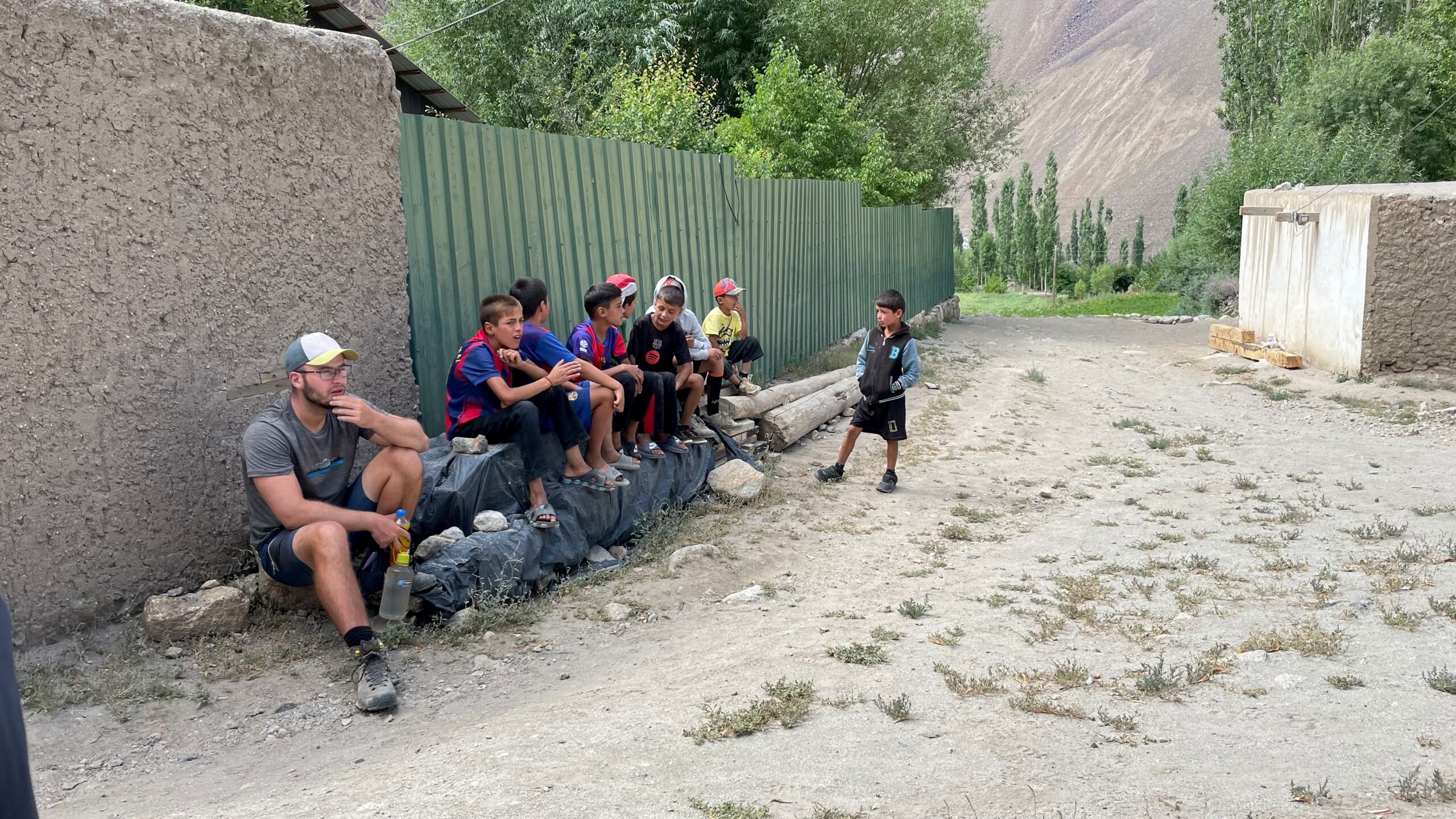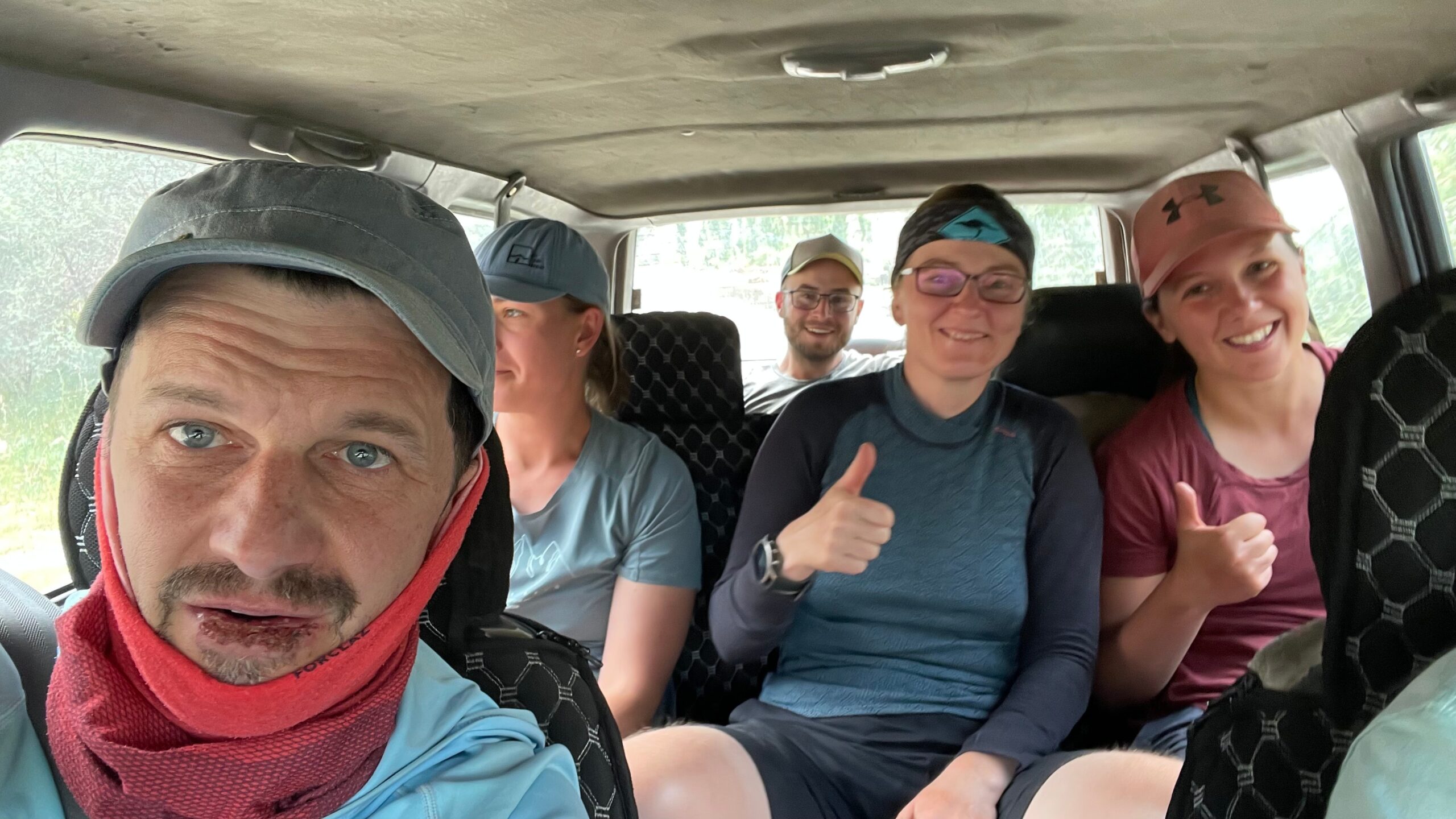 Auto máme domluvené a přichází řidič. A je to ten samý člověk, kterého jsme potkali na začátku, ptali se ho na auto a za 700 SOMů nás nechtěl odvést. 😀 Pak se několik lidí začne angažovat ohledně balení batohů na střechu auta. Sedíme, sledujeme to a odbíháme do obchodu pro pití. Těšili jsme se na vychlazenou Colu, ale tady jsme v horské vesničce, kde to funguje trochu jinak (čti: Cola nebyla vychlazená). Jakmile jsou batohy zabaleny a svázány, tak předpokládáme, že vyrazíme. Ne tak rychle. Řidič otevře kapotu, další borec něco vytáhne a jde do nedalekého baráku. Začneme se vzájemně na sebe dívat, co to jako je. Pak borec přináší nějakou mega baterku a začnou to cpát k motoru. Si dělají srandu? Tak oni pracně naloží a zajistí batohy, aby pak začali řešit, jak to auto nastartují? Tohle vypadá na zajímavou show. Během čekání si ke Kubovi postupně sedne celá místní skvadra kluků ve fotbalových dresech. Jeden je mluvčí a sem tam s Kubou něco prohodí. A tu jde kolem místní děda a podle všeho má v plánu „dát do latě“ místní skvadru. Ke každému přijde, podá mu ruku, a pak pomocí dvou prstů chytne dotyčnému líčko do „svěráku“ a povytáhne to. Určitě to znáte. 😉 Baví mě sledovat, jak kluci na konci řady vidí, co je čeká, vůbec je to netěší a zároveň ví, že tomu neuniknou. 😀 Z ruštiny si pamatuji jen pár slov a mezi ně patří i malčik (kluk) a devočka (holka). A tak kývnu na mluvčího fotbalové skvadry a říkám: „Vy malčici. Gde devočki?“ A nic, žádná reakce. Že by špatná výslovnost? 😀 Ale opravdu mě to zajímalo, protože tam nebyla jediná holka, jenom samí kluci.
