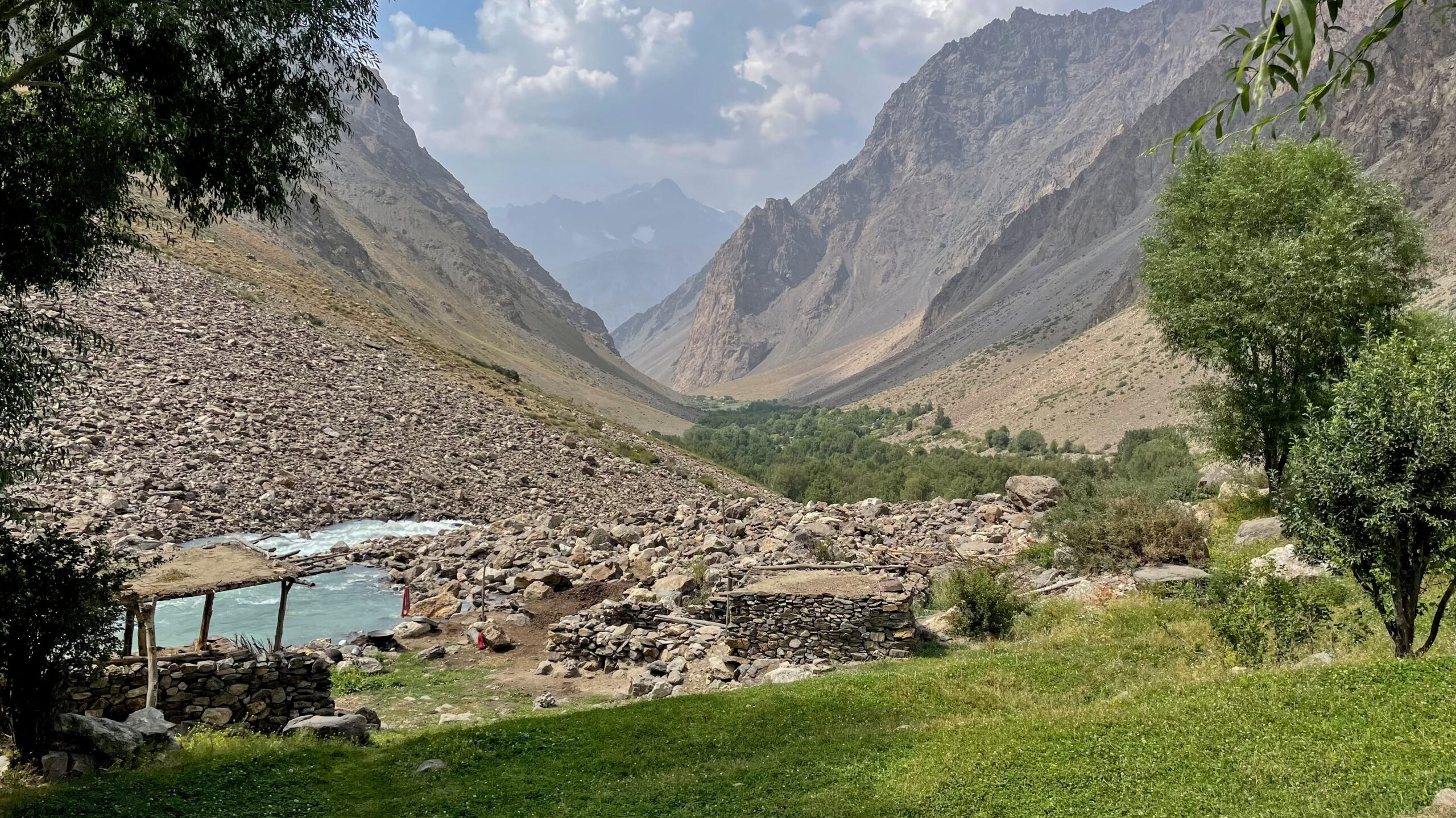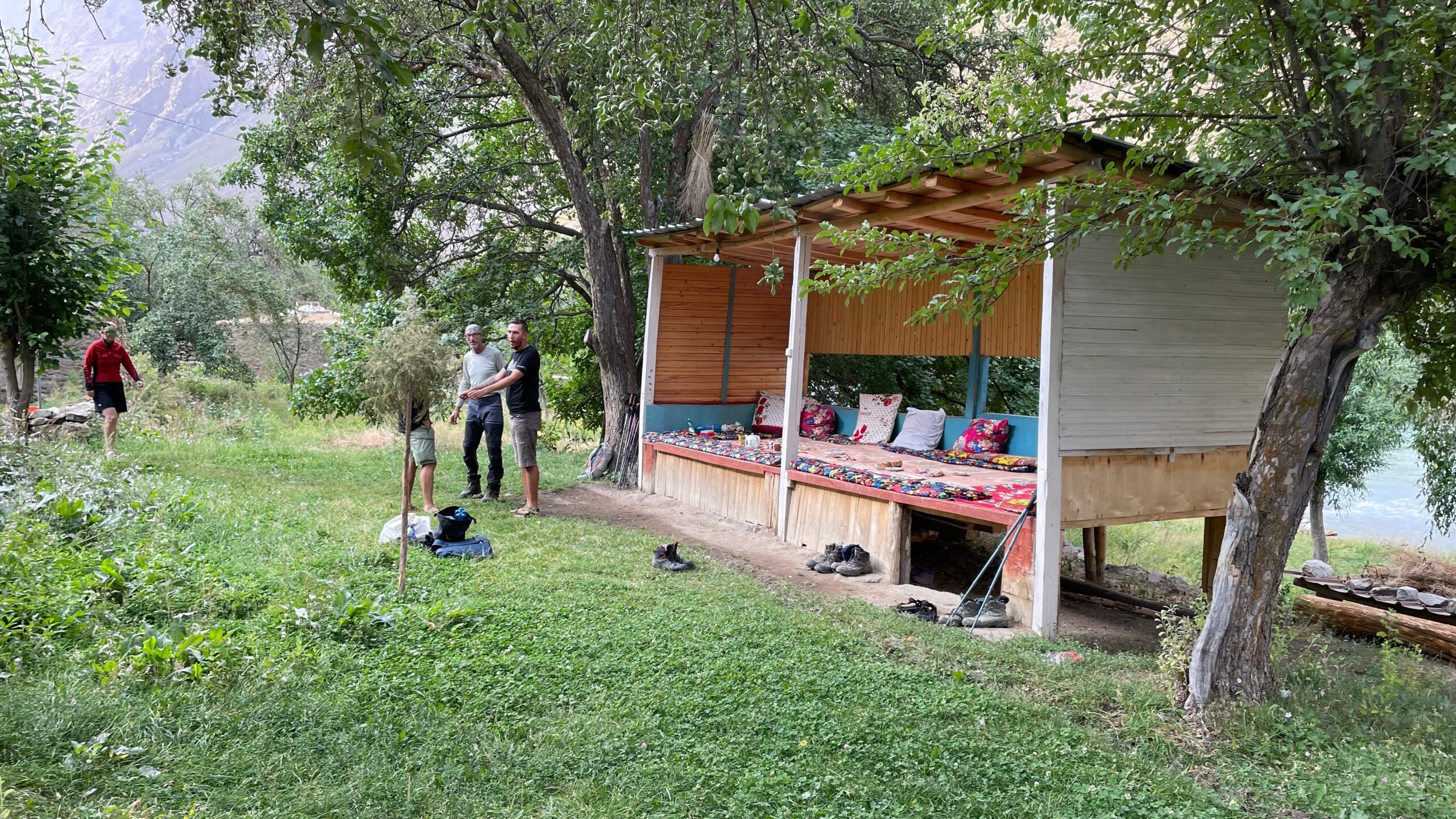 Poslední ráno v luxus vesničce. Vstáváme již v půl sedmé, protože snídaně je domluvena na sedm a odchod bude v půl osmé. Dole u mostu musíme být nejpozději v 11. Na tu dobu je domluvený Muslim s minibusem, který nás bude převážet do Dushanbe. Rychle tedy vše uklidíme, rozprostřeme ubrus a za chvilku Naku přináší jednu lahůdku za druhou. Za chvilku je vše nachystáno a my se pouštíme do snídaně. Pro velký úspěch si opět dávám kaši s třešněmi a opět naprosto luxusní záležitost.