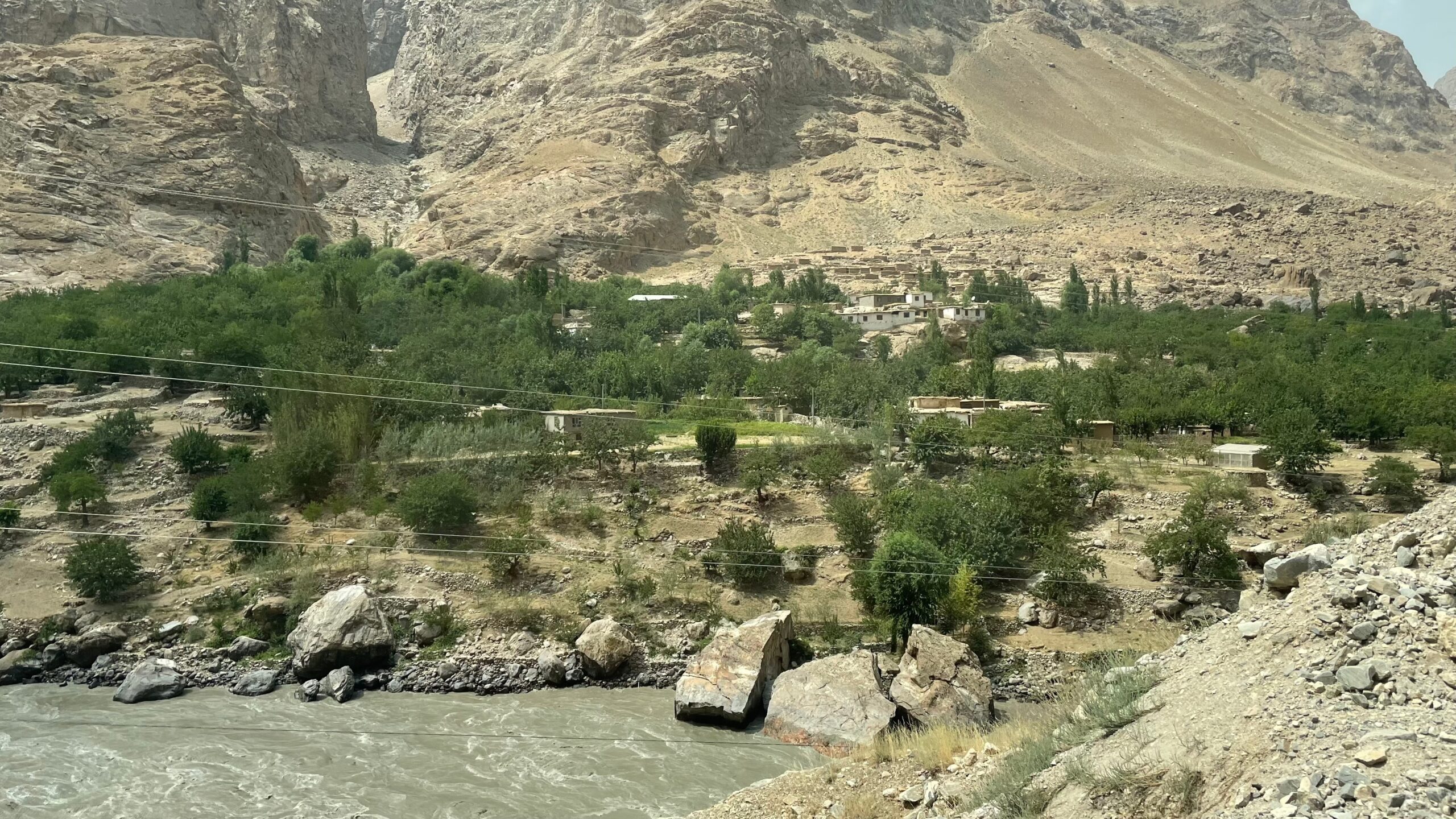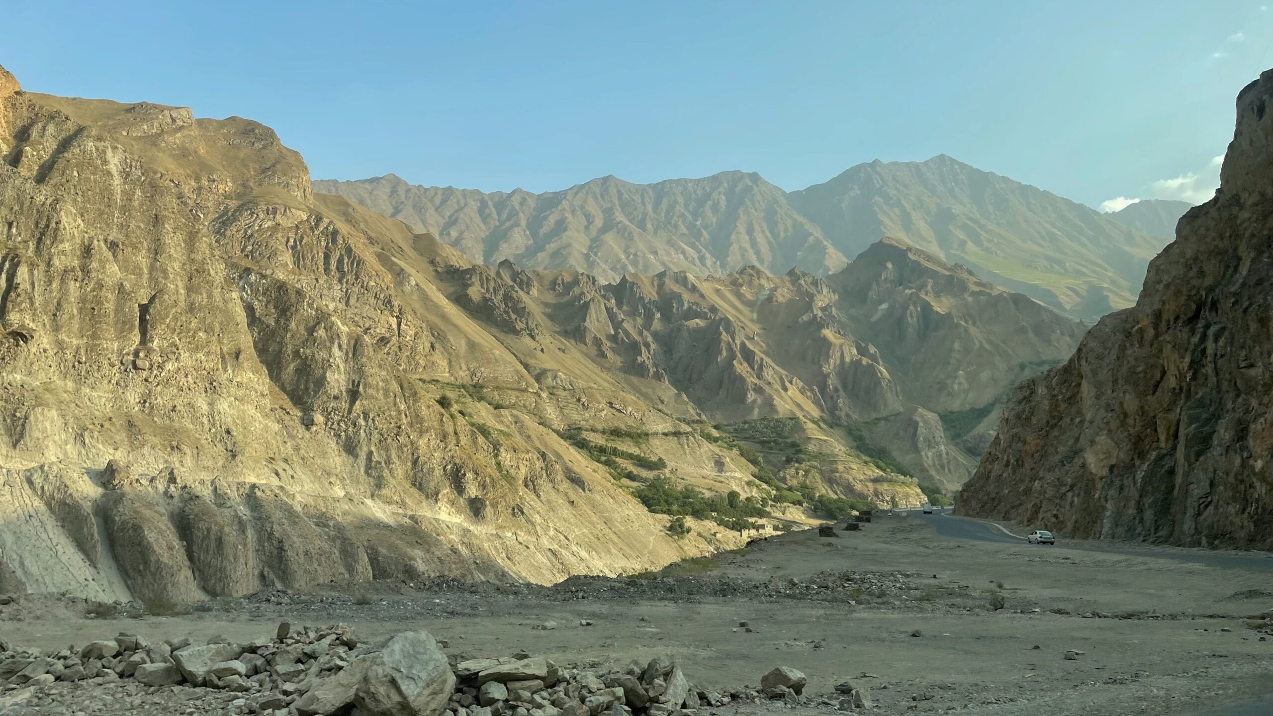 Cesta do Dushanbe bude dlouhá – předpoklad je nějakých 10-12 hodin. Vyjíždíme v půl jedné odpoledne, tak uvidíme, jak dlouho to nakonec bude. Chci se podívat na mapy.cz, kde přesně jsme, ale nefunguje mi zaměření aktuální pozice. Podezřívám Blanku, že mi blokla mobil, protože přece jenom v práci řeší cyber security. 😀 Blanka mi zkušeně řekne, že si mám restartovat mobil, což jsem samozřejmě měl v plánu. 😉 Po restartu to naskočí, ale za hodinku, dvě na tom jsem stejně. Tady asi bude problém jinde, ale nebyla síla a prostor to řešit. Cesta v této oblasti vede kolem afgánské hranice, kde přírodní hranici tvoří řeka. Někde to je zcela otevřené, někde je hranice vytyčena i ostnatým plotem. Ale mnohokrát vidíme vojáky, jak stráží hranici z cesty. Stav silnice je masakriální, co si budeme povídat. Místy to s námi háže tak, že sem tam někdo hlavou jen o kousek mine sedadlo před sebou. No kdyby to trefil, tak by to mohl být i zlomený nos.