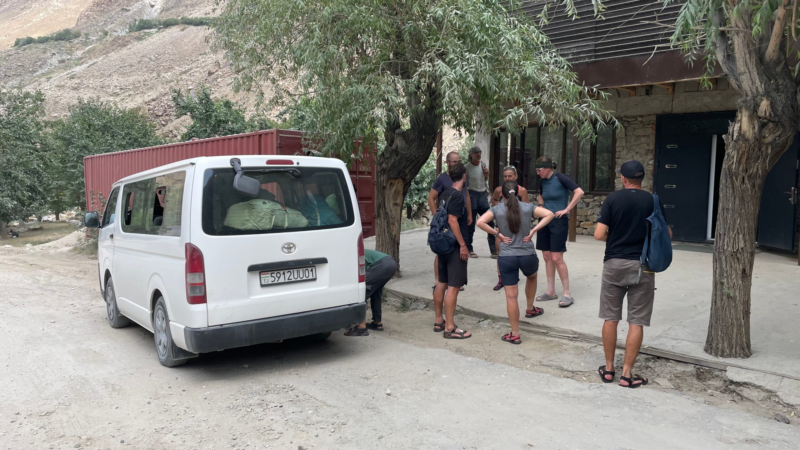 Kolem sedmi večera jsme v městě Qalai Khumb, kde jsme několik dní nazpátek spali při přejezdu z Dushanbe do Bulunkul. Dneska to bude jen krátká pauza na nákup. Jirka nyní komunikuje se svojí manželkou skrz satelitní komunikátor. Během nakupování chce poslat zprávu, a tak dá satelitní komunikátor na střechu minubusu, který je zaparkovaný na rušné ulici před obchodem. Nejsem si úplně jistý, zda to je dobrý nápad, ale Jirka kontruje, že u minibusu bude Muslim. A to jsme v obchodě a najednou vidím Jirku, jak odhazuje vybraný chleba a letí ven. Pak se vrátí s výrazem, že je vše ok. My nechápeme a Jirka nám vysvětluje, že se z obchodu díval na minibus z takového úhlu, že nebyl vidět jak satelitní komunikátor na střeše, tak Muslim, který byl zrovna za minibusem. Trocha adrenalinu k večeru, hej. 😀