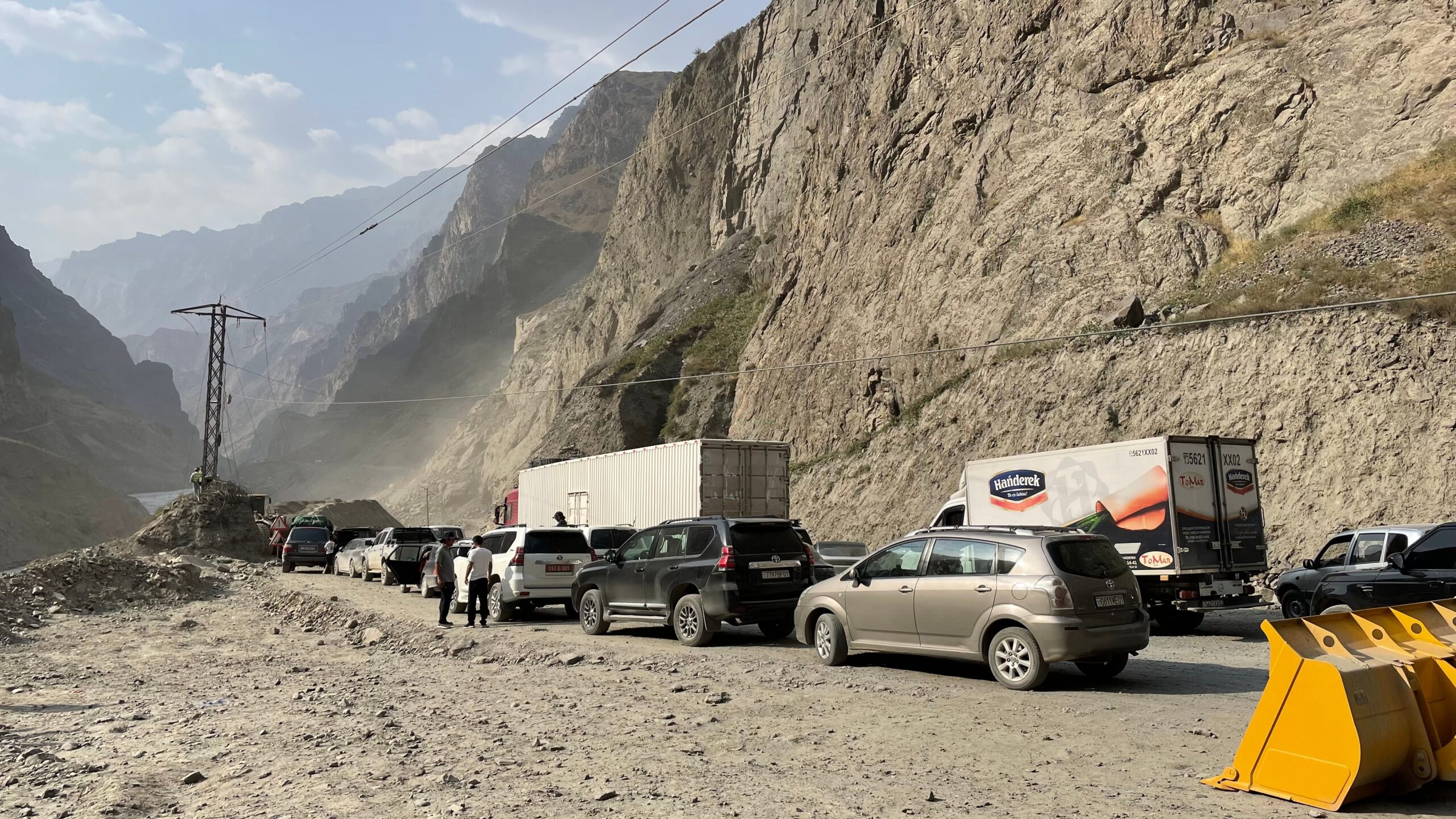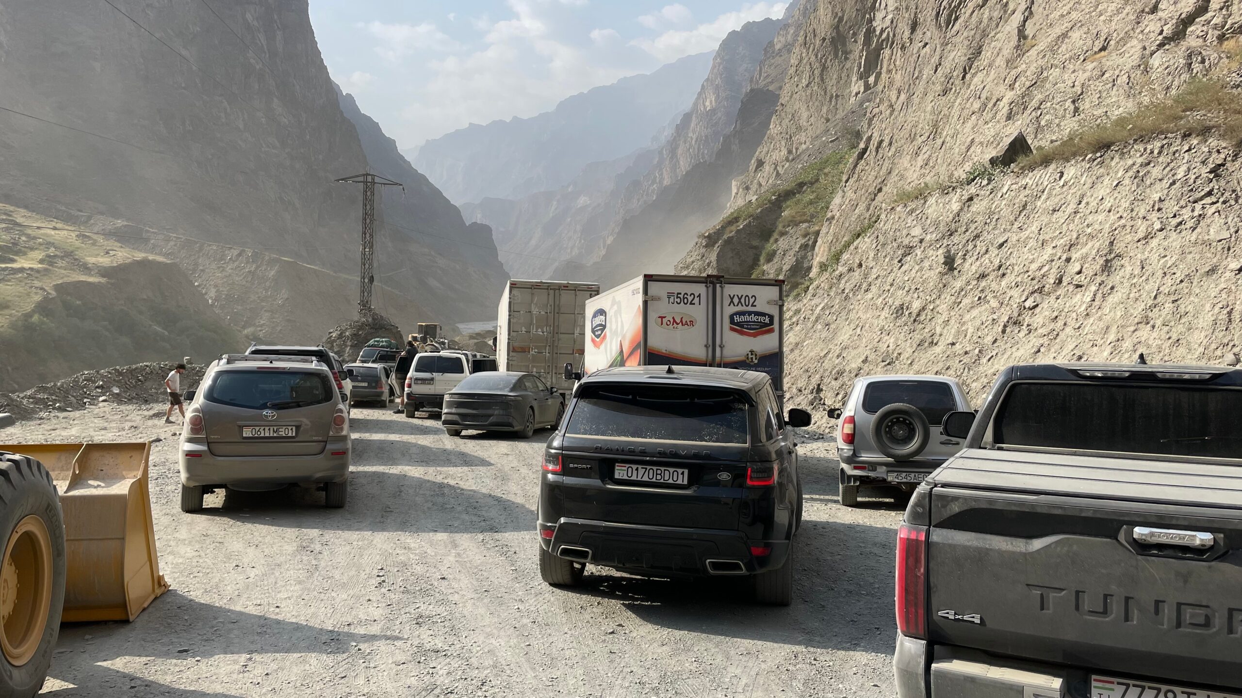 V 17:45 utichnou bagry a zvednou se pomyslné závory. A začne Rallye Tádžikistán. Hlavně osobní auta to berou hlava nehlava a předjíždějí i tam, kde to nedává vůbec smysl. A to se nebavím o bezpečnosti, ta si dala volno a není zde přítomna. Hlavně na těch asfaltových pasážích to je mazec. Po nějaké době se to uklidní, protože ti, co „museli“ spěchat, jsou již před námi. Díky všem těm stavebním úpravám je všude prach a všechny auta jsou solidně zaprášené. Co s tím? Tady to mají velmi jednoduše vyřešené. Všiml jsem si, že někde mají ze svahu vyvedenou solidní rouru, ze které teče silným proudem voda z hor. No a řidiči na pohodu zajedou autem pod tu rouru a lehce popojedou dopředu, lehce dozadu a auto je umyté. 😉 Jednoduché a účinné.