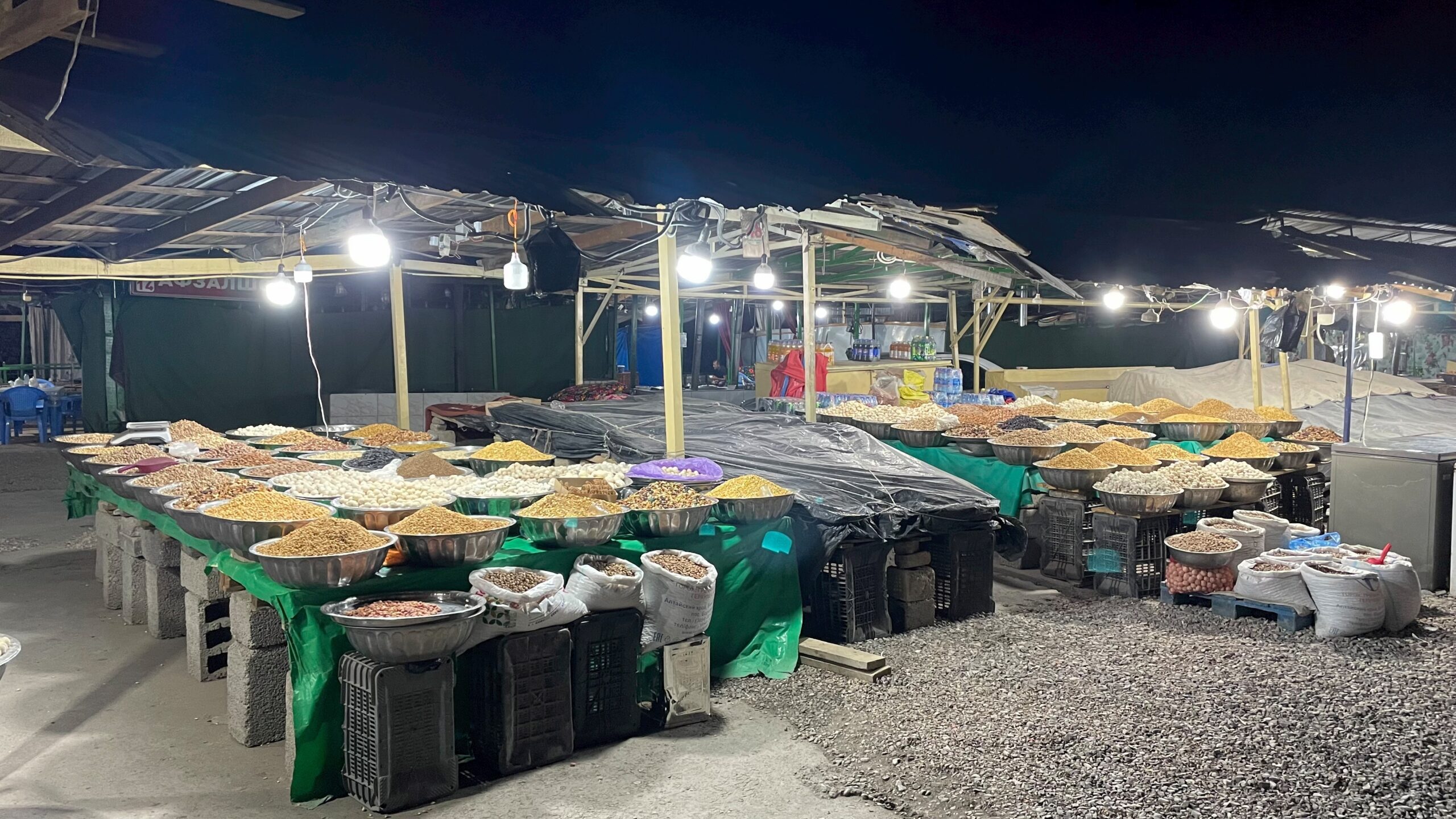 Kolem desáté večer, kdy už víceméně spíme, máme pasovou kontrolu, která nás opět probere. Tiep pak s řidičem domlouvá čůrací pauzu někde u cesty. Předpoklad byl, že pauza bude do půl hodiny. Ale Muslim to valí pořád dál a dál. Za nějakou hodinu a něco zastavuje na pumpě a ukazuje nám, že máme jít dovnitř na WC. Věřím, že měl pocit, že nás osloví klasický záchod. Jenže když je na záchodě „vůně“, která trhá nosní sliznice a do toho na záchodě neteče voda a to jako žádná voda, tak takový záchod nás teda neoslovil. 😀 Zlatý přírodní záchod za keřem. 😉 Pokračujeme dále a máme za to, že to nejhorší, co se týká stavu silnice, máme již dávno za sebou. Chyba lávky. Zlatý hřeb přichází po jedenácté do půlnoci. Opět jsme vyklepaní jak obalované řízky před smažením. 😀 Těsně před jednou hodinou ranní zastavujeme na mini pauzu u nočního marketu. Tady to žije non-stop.