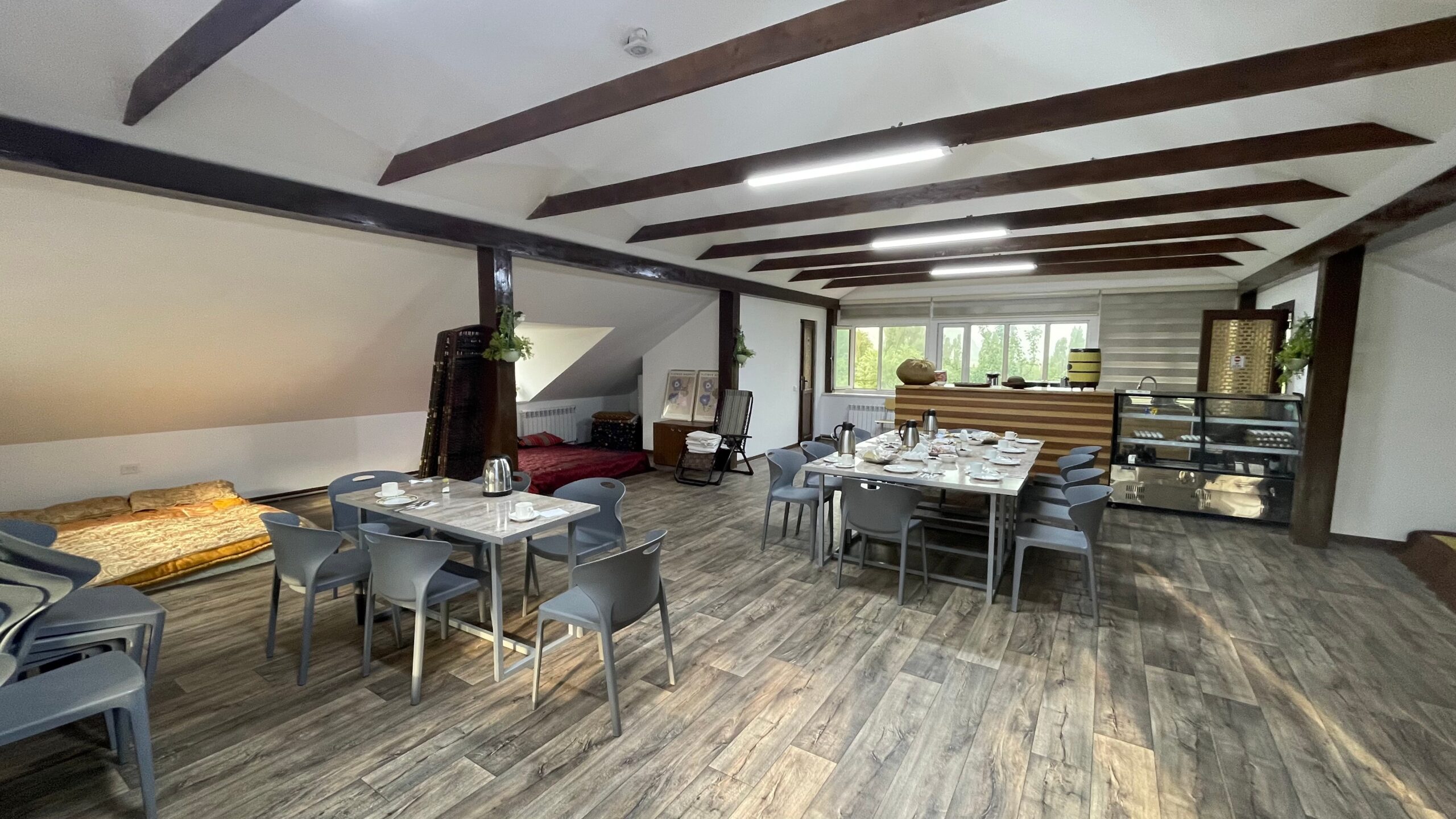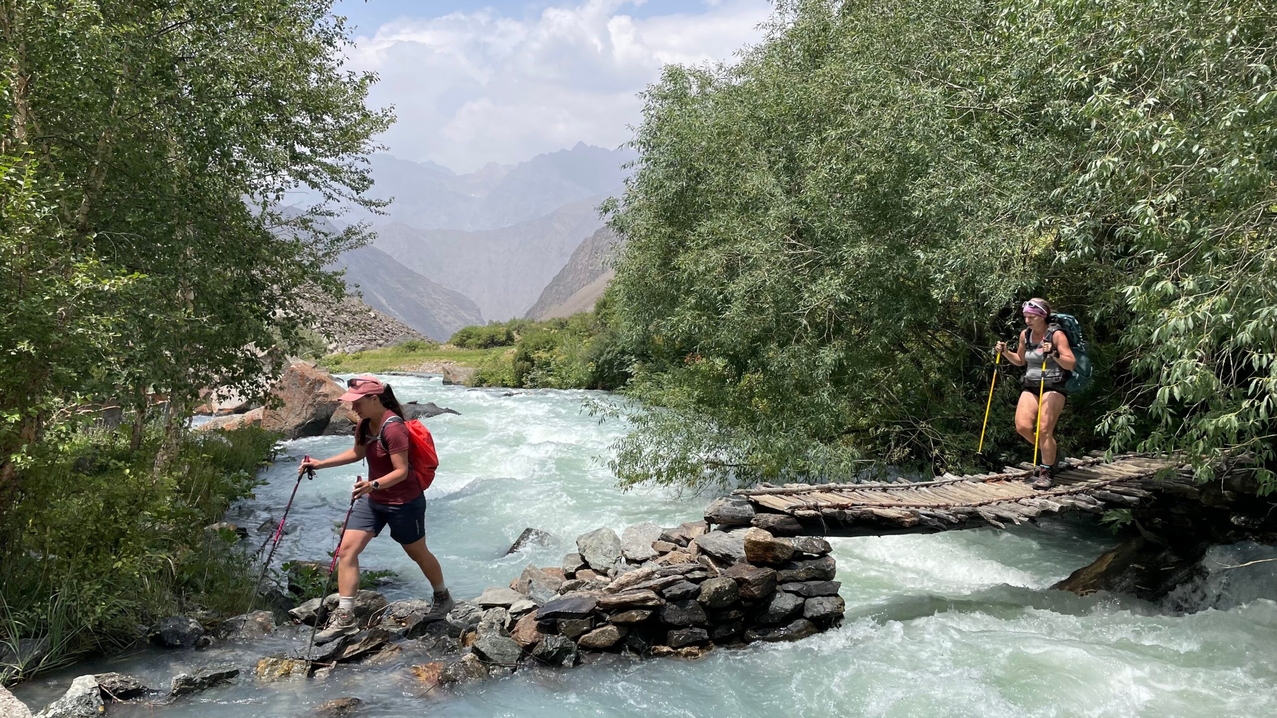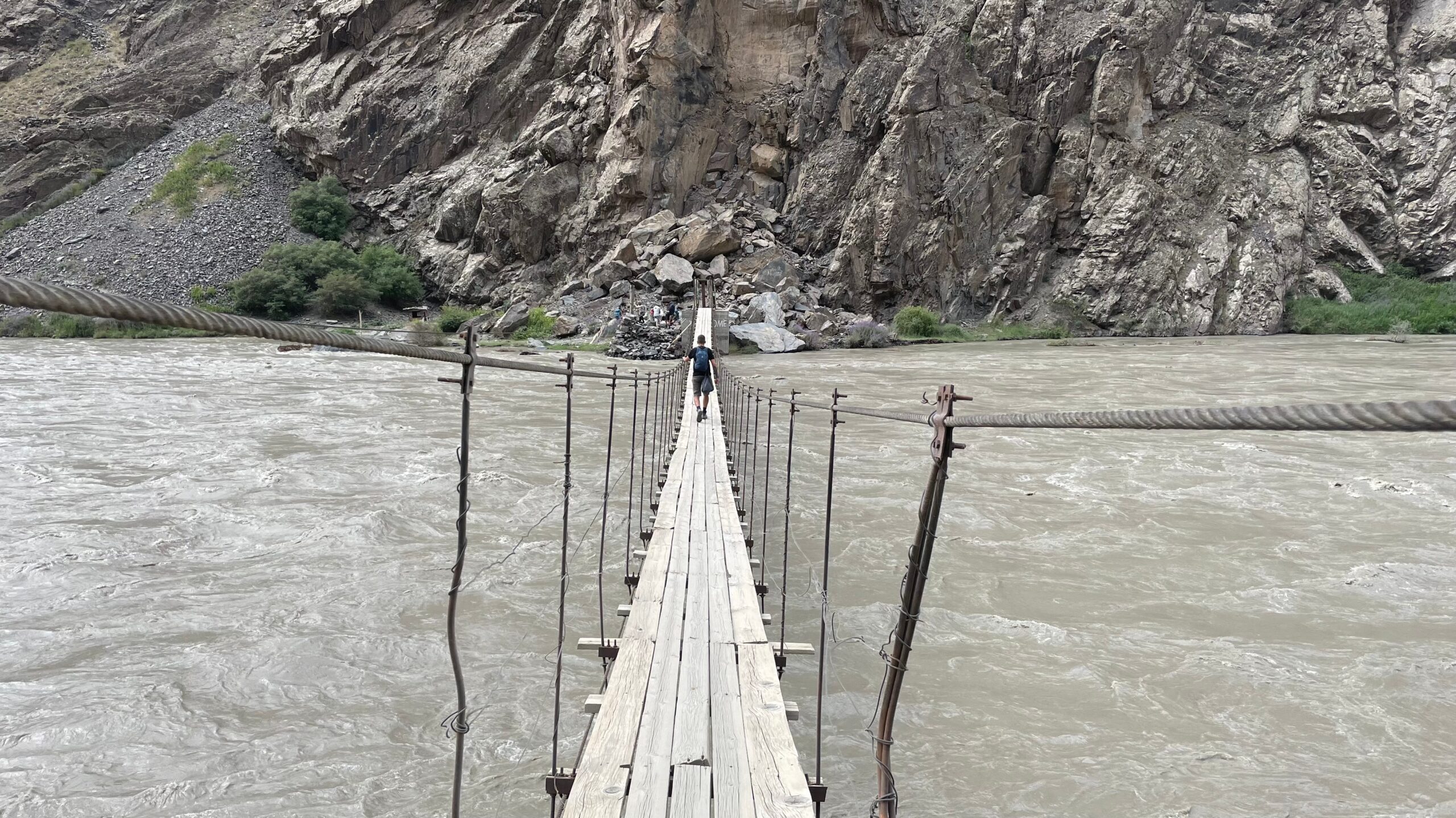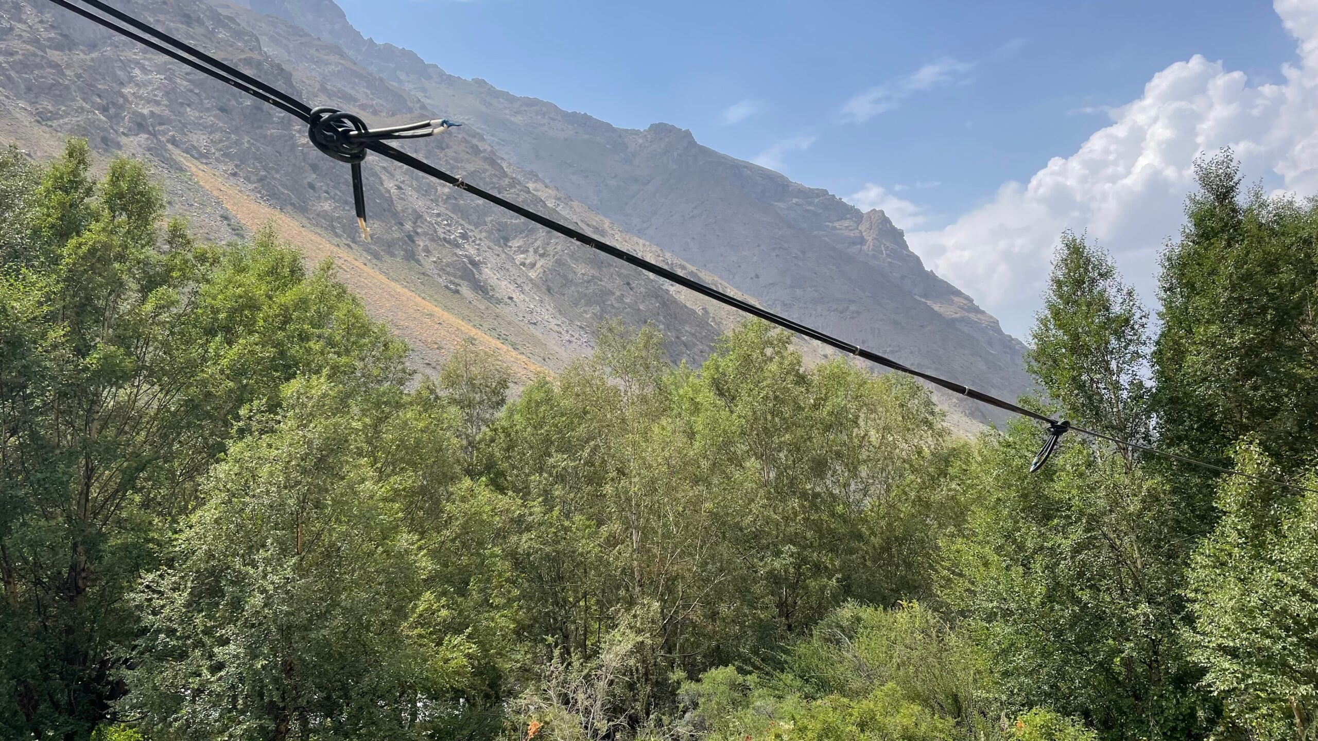 Dojdeme do třetí vesnice, kde na nás čeká dřevěná konstrukce, která by se dala přirovnat k pergole, ale místo stolů a židlí tam je vyvýšená podesta, kde jsou koberce a polštáře a sedí a leží se tam. Ohlásíme se a za chvilku přijde mladá dáma, která se o nás bude následující dny starat, co se týká jídla a spaní. Mluví velmi dobře anglicky, takže nebude problém v komunikaci. Dozvíme se, že se jmenuje Naku, je učitelkou a nyní zde pomáhá svému strýci, tetě a prarodičům. A je okouzlující – obličeji vévodí nádherné tmavé oči a perské rysy. Ony dámy v Tádžikistánu jsou obecně krásné, jak jsme se, jak pánové, tak dámy, shodli. 😉 Za chvilku nám Naku přinese odpolední občerstvení v podobě jogurtu, zavařených třešní (ty byly naprosto luxusní), chlebu, různých druhů ořechů, sladkostí a čaje. Prostě luxus.