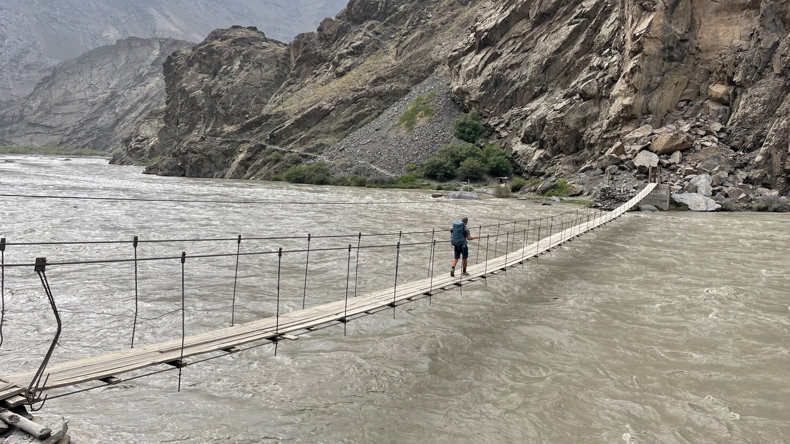 Po luxusní pauze se vydáváme do druhé vesnice. A tu Jirka zavelí, že půjdeme jinudy a my ho následujeme do vysoké trávy. Nejsem si jistý, ale šéf je šéf. Pokračujeme přes louku dolů k řece, ale vypadá to čím dál divněji. Dokonce na nás mává místní babča a gestikuluje, že tudy ne. Ale Jirka se nedá a nakonec najde to, co hledá. Mini mostek přes řeku a dostaneme se na druhý břeh. Pokračujeme dál, ale trail místy je a místy není. Ne všichni jsou z toho nadšení, ale Jirka je připraven i na toto. Expedition club má motto a Jirka ho v tuto chvíli vytasí: „Expedition club – vydej se do míst, která nejsou pro každého.“ Rebel. 😀 Prokousáváme se místy těžkým terénem, ale aspoň pohled na řeku či rozlitá jezera je víc než magický. Voda má nepřirozenou barvu, která nám připomíná aviváž. Fotky řeknou více.